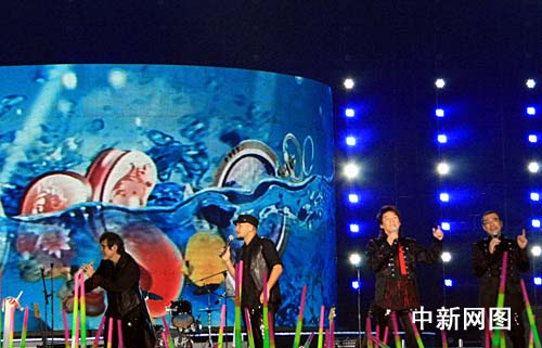 中新網(wǎng)?12月31日電 (記者 關向東) “縱貫線生在臺北,縱貫線兄弟姐妹,嘿——嘿——嘿——,穿越過千山萬水,飛躍那東南西北,大家來真情體會……”,三十日晚,四個大男人,一條“縱貫線”,李宗盛、周華健、羅大佑、張震岳登上了?凇皻g樂行-新跨越•新夢想”的舞臺,引發(fā)海南島萬人歌迷歲末狂歡。