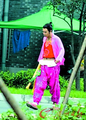 當(dāng)日,小沈陽在幾位工作人員的陪同下走出攝影棚。一身“紅妝” 的他,里面竟穿了一件露出肚臍的大紅肚兜。這身裝扮,看起來更像是表演東北二人轉(zhuǎn)!看來,在劇中負責(zé)搞笑的小沈陽,穿著打扮也跟以前的老本行相似,演起來應(yīng)該也會更加得心應(yīng)手。