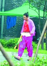 前日下午2時左右,小沈陽在幾位工作人員的陪同下走出攝影棚。一身“粉裝”的他,里面竟然穿了一件露臍的紅色肚兜,看起來更像是二人轉(zhuǎn)演員!看來,在片中負責搞笑的小沈陽,穿著打扮也跟老本行相似,演起來應(yīng)該會更加得心應(yīng)手。與小沈陽的搞笑打扮相比,孫紅雷的造型多了一分英武之氣。在攝影棚外打電話的孫紅雷,身著藍衣藍褲,外面套了一件黑色護甲,看起來像是一個忍者。韓貝塔