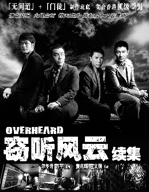 信息時(shí)報(bào)訊 (記者 陳爽) 劉青云等三大型男主演的《竊聽風(fēng)云》上映10天內(nèi)地票房勁破6000萬元,且香港首周票房也超過530萬港元,片方宣布將在本周五舉行慶功宴。同時(shí),由于影片叫好叫座,投資方開拍續(xù)集的意愿相當(dāng)強(qiáng)烈,甚至一早就公布了續(xù)集的概念海報(bào)(上圖),海報(bào)主打劉青云、古天樂、劉德華、甄子丹四大型男,之前廣州宣傳時(shí)被“忽略”的吳彥祖就蹤影全無。