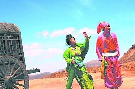 《三槍》主演花花綠綠的裝扮相當(dāng)惹眼,原來是張藝謀有意為之,“我想的徹底是鮮艷的,要讓人看了就炸起來那種(感覺),完全不要按常規(guī)去想,咱先弄強烈,再往回收好辦!彼滓彩强桃庾非,“這個綠是水綠,果綠,就是俗一點……顯得廉價了一點,就百家衣,跟萬民傘似的,很刻意,要這種自由拼貼。”