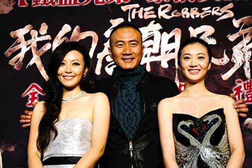 昨日下午,定位為“古裝暴力喜劇”的電影《我的唐朝兄弟》在北京舉行首映式。男主角之一的姜武因?yàn)橐s拍兄弟姜文的新片《為子彈飛》而缺席,另一位男主角胡軍趁機(jī)大享齊人之福,摟著兩位美女主演王曉和于小磊走過(guò)紅地毯。