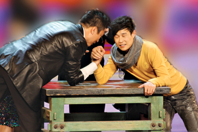 而昨天,孫紅雷和小沈陽也首次正面回應了兩人在拍戲之間的打架傳聞——兩人在節(jié)目現(xiàn)場掰起了手腕,而剛剛跳完勁舞的孫紅雷竟然輸給了瘦弱的小沈陽。瞿婧宇