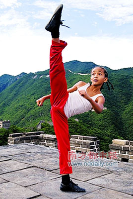 由成龍和威爾·史密斯的兒子賈登·史密斯(JadenSmith)主演的《功夫夢(mèng)》(The Karate Kids)近日曝光了幾張官方劇照,畫面所見,成龍?jiān)陂L(zhǎng)城上訓(xùn)練賈登·史密斯,小子架勢(shì)十足。該片由中影集團(tuán)、索尼·哥倫比亞和威爾·史密斯(Will Smith)旗下的Overbrook娛樂公司聯(lián)合投資拍攝,將于明年6月11日在北美公映,中國(guó)也將同步引進(jìn)。