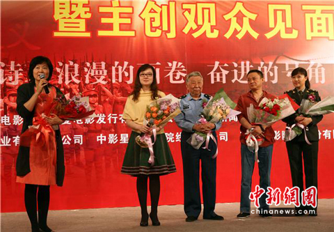 中新網(wǎng)5月14日電 繼大型音樂舞蹈史詩《復(fù)興之路》在人民大會堂和國家大劇院上演百場后,《復(fù)興之路》的電影版將于5月15日在全國上映。今天,電影版《復(fù)興之路》在北京青年宮電影城舉行了北京首映典禮!稄(fù)興之路》舞臺版文學(xué)部主任閻肅、電影版導(dǎo)演王一巖、歌唱演員王麗達、王慶爽等主創(chuàng)與現(xiàn)場觀眾進行了親切交流;顒又校惷C妙語連珠,開玩笑爆料自己險些就成為了《復(fù)興之路》的朗誦;主唱王麗達也以特別的形式演唱了歌曲《學(xué)習(xí)雷鋒好榜樣》。