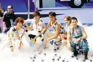 烈日炎炎阻擋不了粉絲的腳步,其中SJ-M的粉絲最為活躍,在他們振聾發(fā)聵的尖叫聲中,09年“百事”形象代言人古天樂、羅志祥、蔡依林、李俊基、黃曉明、Super junior-m以載歌載舞回應(yīng)粉絲熱情。