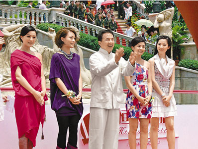 中新網7月15日電 成龍、容祖兒、蔡卓妍、范冰冰、劉亦菲五位兩岸三地的紅星難得在同一場合出現(xiàn),日前在廣州出席某地產開盤盛典,擔任典禮的嘉賓。當天幾位明星均盛裝現(xiàn)身時,現(xiàn)場實時氣氛沸騰起來。
