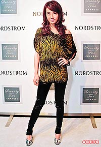 目前在美國10多個城市及加拿大都可看到“72變”,最快明年進軍內(nèi)地、新加坡、馬來西亞市場,她昨天被問臺灣地區(qū)何時可買到“72變”服飾,笑說:“還不知道,我比任何人都希望越快越好!弊蛱飕F(xiàn)場展示她設計的1千件限量T恤,1件約1500元臺幣,當場被搶購一空,為公司進帳臺幣150萬元。