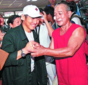 李連杰8月13日起帶著物資深入臺(tái)灣災(zāi)區(qū),為備受超級(jí)臺(tái)風(fēng)莫拉克摧殘的臺(tái)灣中南部災(zāi)民及義工打氣。前日他繼續(xù)探訪災(zāi)區(qū),有災(zāi)民向他哭訴:“我家全沒(méi)了!”李連杰趕緊握住他的手給予安慰,場(chǎng)面感人。不過(guò)也有輕松的時(shí)候,李連杰所到之處,大批災(zāi)民和義工均蜂擁上前看熱鬧,許多年輕女義工更是尖叫著將他團(tuán)團(tuán)圍住,李連杰只能笑說(shuō):“這么圍著,我怎么探望災(zāi)民啊!
