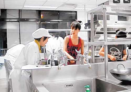 中新網(wǎng)8月18日電 最近,蔡依林(Jolin)在臺灣餐飲學(xué)校學(xué)烹飪的消息曝光,時隔1周,小天后準(zhǔn)時到學(xué)校報(bào)到。她在廚房里身穿緊身低胸背心,認(rèn)真做菜,切菜擺盤有模有樣,不時還跟身旁的老師請教:“所以是這樣弄喔?”神情認(rèn)真。