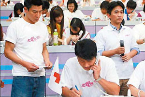 據(jù)“聯(lián)合早報”消息,香港演藝圈為了幫助臺灣受災(zāi)民眾盡快重建家園,積極動員,與臺灣藝人聯(lián)手舉辦《88水災(zāi)關(guān)愛行動》。劉德華水災(zāi)后第一時間飛抵臺灣賑災(zāi),返港后更是召集200位藝人,趕工錄制“88水災(zāi)關(guān)愛行動”主題曲《滔滔千里心》。擔任總召的他,一下飛機便直奔活動現(xiàn)場,強打精神緊盯各個環(huán)節(jié),不但親手寫大字報,更扯破喉嚨指揮全場。