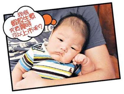 香港“成報(bào)”消息,潮媽Kelly在博客上寫道:“蝦餃仔出世已經(jīng)有一百日啦!好開心見到蝦餃仔一日比一日長(zhǎng)大,他現(xiàn)在已經(jīng)有16. 5 磅!大家都成日問我有沒有蝦餃仔的近照,現(xiàn)在就同各位哥哥姐姐見下面啦!“由于愛兒踏入出生后一百日,Kelly專程拍下一張近照放在blog上,只見蝦餃仔眼睛炯炯有神,樣子與出世時(shí)判若兩人,頭發(fā)亦很濃密。雖然已過百日,但劉家并無擺百日宴,以免感染豬流感。