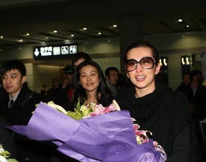 28日在金馬獎(jiǎng)?wù)米罴雅鹘堑睦畋谧蛉障挛? 點(diǎn)返京。在北京T3航站內(nèi),眾多的李冰冰影迷和工作人員前來(lái)接機(jī),并為這位影后送上鮮花。李冰冰再次感動(dòng)得落淚,除了表示感謝外還與接機(jī)的影迷和工作人員擁抱。