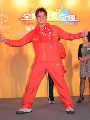 中新網(wǎng)12月1日電 譚詠麟昨日以一身紅裝及染紅發(fā)出席迎接?xùn)|亞運(yùn)動會的活動,譚詠麟不僅在活動中透露兒子曉風(fēng)愛打籃球外,還對時(shí)下的娛樂熱點(diǎn)進(jìn)行點(diǎn)評,更自曝曾遭女歌迷“胸襲”。