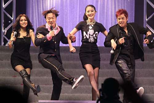 謝安琪(左起)和陳奕迅、陳慧琳、譚詠麟挽手合唱