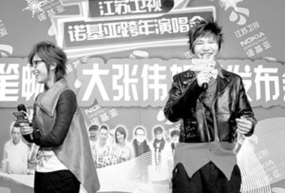 周筆暢、大張偉加盟江蘇衛(wèi)視跨年演唱會新聞發(fā)布會昨日在京舉行。雖說大張偉年齡比周筆暢大,出道時(shí)間也比周筆暢長,但面對眼前這位“新人”,大張偉自稱“筆迷”,不僅極力討好,和周筆暢說起話來還一口一個(gè)“您”。