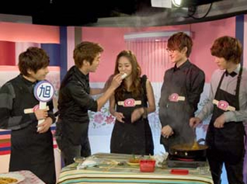中新網(wǎng)12月31日電 近日,Super Junior-M再度上臺灣娛樂節(jié)目,搶著做美食給甜心美女主持侯佩岑。節(jié)目中,由厲旭和韓庚分成兩組進(jìn)行PK,但被分在韓庚組的東海卻包了個巨大水餃,還在里頭狂加辣,嚇得侯佩岑直說,“媽媽們千萬別讓他進(jìn)廚房啊!