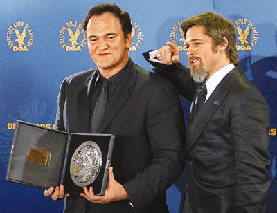 香港“文匯報(bào)”消息,上周六在洛杉磯舉行的本年度美國導(dǎo)演公會(huì)獎(jiǎng),作為候選電影《無恥混蛋》的主角,皮特特意陪同導(dǎo)演昆汀出席已讓人有點(diǎn)意外,全因前者連金球獎(jiǎng)都照樣缺席。原來他是想借和女友朱莉雙雙露面,粉碎外間有關(guān)他倆分手的傳聞。