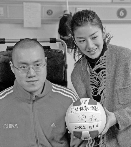 即使湯淼坐在輪椅里,嬌小的黃奕與這位高大的男排球員的個頭對比也十分鮮明!拔椰F(xiàn)在的生活和當運動員時沒有什么區(qū)別,每天上午和下午都有固定的恢復訓練時間。”湯淼說:“如果每天不做大量的運動,許多癱瘓的人就會心律衰竭,最后也沒救了!