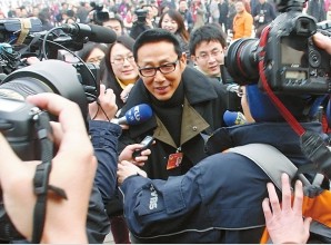 昨日,全國(guó)政協(xié)十一屆三次會(huì)議在北京開(kāi)幕,文體明星代表成為追訪的焦點(diǎn)。楊瀾、央視名嘴朱軍、崔永元、《新聞聯(lián)播》播音員李瑞英、演員陳道明、著名歌唱家關(guān)牧村、韓紅、導(dǎo)演馮小剛、體育明星劉翔遭圍堵采訪。劉翔在政協(xié)會(huì)議上遭圍堵露求救表情,離場(chǎng)時(shí)學(xué)聰明跑步開(kāi)溜,讓記者們一路狂追。(春城晚報(bào))