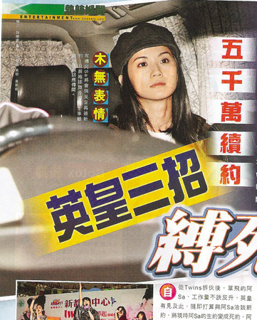 在Twins拆伙期間,單飛的阿Sa工作量不跌反升。當(dāng)時不僅有其他唱片公司打算高薪挖角,而且她與鄭中基仍是夫妻關(guān)系,有傳鄭中基有意撬她到金牌組成夫妻檔賺錢,在種種“誘惑”之下,英皇與阿Sa的新合約問題一直處于拉鋸階段,久久未能成事。 現(xiàn)在“Sa基”婚變,英皇趁機再談續(xù)約。為了讓阿Sa下定決心,英皇準(zhǔn)備以5000萬港元的天價利誘阿Sa,并承諾將力捧她,在Twins的復(fù)合演唱會后讓阿Sa再次單飛工作。有知情人士說:“阿Sa本來就和公司關(guān)系非常好,現(xiàn)在和鄭中基劃清界線后,更加要搏命賺錢。公司給出那么優(yōu)厚的條件,阿Sa很難不心動!