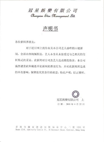 聲明書全文如下