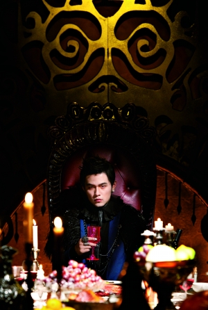 在昨日公布的預(yù)購海報(bào)上,周杰倫化身中世紀(jì)的吸血鬼,坐在餐桌前擺出若有所思狀,臉色蒼白。造型師為周杰倫在指甲上貼上有鉚釘?shù)闹讣灼劬镞戴了特殊的隱形眼鏡,塑造出“動物般的直立橢圓瞳孔”。周杰倫說自己在剛開始戴上這些“裝備”時(shí),覺得渾身不舒服,不過隨著整體造型的完成,他覺得自己越來越有一個(gè)真正吸血鬼的感覺了。
