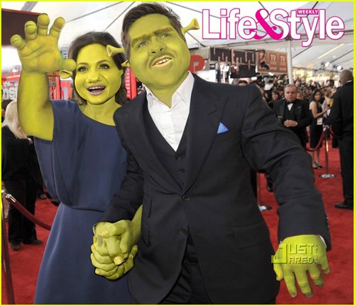 好萊塢電影大作《怪物史萊克4》將在今年5月21日上映,而一些雜志也抓住這個機會,將娛樂名人和史萊克聯(lián)系在一起吸引眼球,《Life & Style!》雜志就將布拉德·皮特夫婦、凱特·戈瑟琳以及蘇珊大媽惡搞成了《史萊克》中的形象。