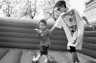 “平時(shí)真沒(méi)時(shí)間這么陪他玩,今天(2日)是他的生日,怎么也得好好陪陪他。”孫悅喘著氣說(shuō)。她剛把水槍放下,小儒生又跑了過(guò)來(lái),拉著她上氣墊床上玩。