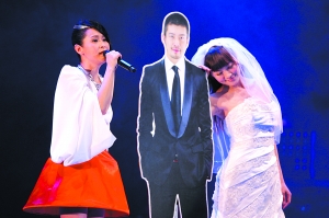 這場2個多小時的演唱會,劉若英沒有邀請任何嘉賓,但是她卻為大家?guī)砹宋逶绿、品冠、吳彥祖、古天樂等人的、真人大小的紙片人來為自己伴舞助陣。在她演唱歌曲《夢童》時,舞者推著這幾位身穿黑色西裝的帥哥來到了舞臺上。原來奶茶將五月天、品冠等好友的紙人模特搬上了舞臺,同時她還帶來了自己“垂涎已久”的吳彥祖紙人模特,還在現(xiàn)場與每個帥氣的男伴牽手跳舞。