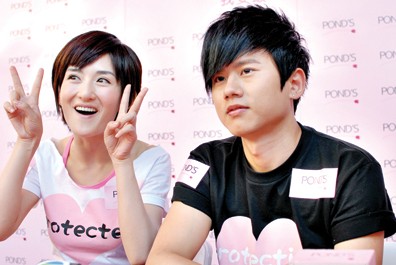 在今年初的某場頒獎典禮上,謝娜和張杰十指緊扣同臺亮相,并以男女朋友相稱,這是從“快男”比賽開始便傳出戀情的兩人在經(jīng)歷兩年的地下戀后首度“見光”。此后,兩人便一發(fā)不可收地到處秀恩愛。昨日的“反UV保護(hù)令”發(fā)布現(xiàn)場,兩人再度將“秀愛”進(jìn)行到底。謝娜在臺上嬌嗔地說:“張杰就是我心目中的完美男生,他就是很完美,各方面都很完美。”而張杰則在臺上肉麻地宣布:“娜娜是我的女朋友,我不允許我所愛的人受到任何傷害,這個(gè)夏天我要給娜娜最杰出的保護(hù)!痹捯魟偮,只見謝娜開始用手輕擦眼睛,以一句“是的,我們會一直走下去”作為愛的回應(yīng)。