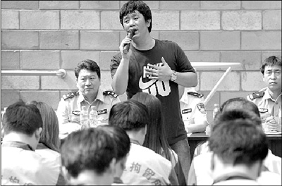 剛走進(jìn)會場的含笑,在看到眾多媒體記者后說:“拍我沒關(guān)系,請不要拍這些朋友的正面,他們出去還要重新做人!敝灰痪湓捑挖A得了數(shù)十名在押人員的掌聲。