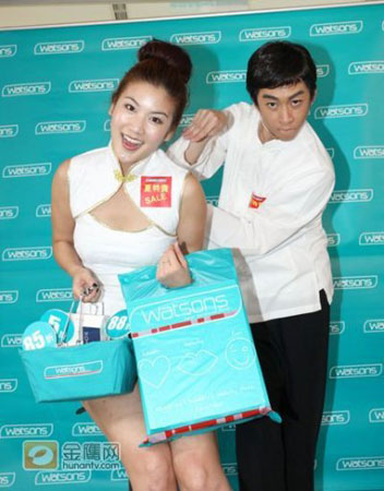 藥妝通路龍頭屈臣氏夏特賣5月21正式開(kāi)跑,記者會(huì)上邀請(qǐng)搞笑界A咖藝人陳漢典以及“金”省女王宋新妮,分飾一代武術(shù)宗師葉問(wèn)及葉嫂。沒(méi)想到綠草陳漢典升格擔(dān)任一代宗師的第一件任務(wù)即是在特賣會(huì)場(chǎng)對(duì)飾演葉嫂的宋新妮上下其手,現(xiàn)場(chǎng)示范臉紅心跳的專人手技服務(wù)!