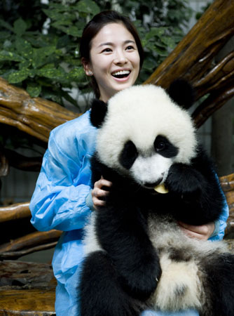 成都大熊貓基地方面表示:“去年因四川大地震,熊貓的另一個棲息地——臥龍基地被毀,因此正在募集重建基金,而這次宋慧喬擔(dān)任愛心大使,所以希望能夠得到中國和亞洲其他國家的幫助。”