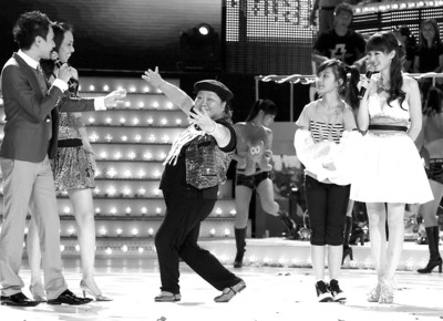 身材矮胖、表情豐富、舞姿夸張,60歲的馬秀林在日前東方衛(wèi)視直播的《歡聚世博·全家都來賽》節(jié)目中甫一亮相,即引發(fā)驚呼——“芙蓉奶奶來了!”但最終奪冠呼聲頗高的“芙蓉奶奶”仍慘遭淘汰,對此,“芙蓉奶奶”當(dāng)場發(fā)飆:“評委何占豪完全不懂我的表演,評委標(biāo)準(zhǔn)有問題! ”
