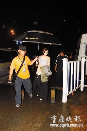 范冰冰遭“劫持”了,英雄救美的則是張嘉譯!前晚,電影《日照重慶》通宵趕工,在龍湖某超市拍攝了范冰冰此次離渝前的最后一場戲。由于深夜人煙稀少,坐著一輛別克車前來趕戲的范冰冰,悠然地走起了大馬路。面對記者的鏡頭,主動(dòng)撥開了工作人員布置的“傘陣”,也讓其在該片中的造型得以首次曝光。