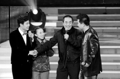 眼看唱主題歌的事要黃了,小沈陽和毛毛終于使出最后一個殺手锏:請出自己的舅姥爺,這舅姥爺并不是大病初愈的趙本山,正是《三槍拍案驚奇》的導演張藝謀。幾乎“絕跡”綜藝類節(jié)目,這次也算是為新片獻出了綜藝“處女秀”。至于為什么成了小沈陽和毛毛的舅姥爺,張藝謀的解釋是,我和丫蛋的爺爺(指趙本山)是好朋友啊!有了舅姥爺?shù)闹С,小沈陽和毛毛接下來的表演更賣力了,他們和《星光大道》的選手李玉剛等,進行了一系列的PK,可最后的結果還是不分伯仲?粗@兄妹倆不停的鬧騰,張藝謀最后發(fā)話了:“小沈陽,你也別在人家《星光大道》上胡鬧了,就跟我走吧,不看僧面看佛面,看在丫蛋她爺爺?shù)拿嫔,《三槍拍案驚奇》的主題歌,就讓你唱吧!”