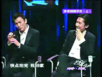 當(dāng)梁朝偉一上場,朱軍便說:“上次錄《無間道》時(shí)你和劉德華一起欺負(fù)我,這次就你一個(gè)人,我終于可以報(bào)仇了!倍撼瘋t很不解地說:“上次是你欺負(fù)我們吧。”