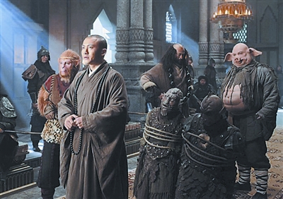 這邊浙版《西游記》在各大衛(wèi)視邊播邊被罵,另一邊張紀(jì)中版《西游記》則在北京拍攝正酣。與好萊塢合作的演員造型,一直是張紀(jì)中版《西游記》最大的噱頭:戴斗笠的唐僧、身著虎皮裝的悟空、腆著大肚雷人“豬”相的八戒,還有脖子上掛著大串佛珠任勞任怨的沙僧,這次從劇組曝光的一批高清劇照來(lái)看,四位主演的造型竟得到不少網(wǎng)友好評(píng)。