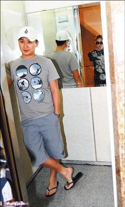 戴著帽子的黃柏俊,穿著T-Shirt、短褲,腳踩夾腳拖鞋,完全看不出富家公子哥的驕氣,看到記者的鏡頭,黃柏俊顯得有些尷尬,但眼見無處可躲,索性露出笑容,大方讓記者拍照,跟在后頭的侯佩岑則是一個箭步,閃進(jìn)電梯里,記者問她何時結(jié)婚?一身時尚打扮的她笑而不答。