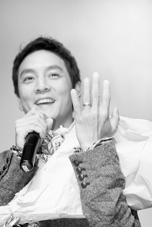 日前主動發(fā)布已婚消息的香港藝人吳彥祖,昨日現(xiàn)身北京宣傳新片,席間不僅大方秀出自己的婚戒,還自爆能夠出演《如夢》有老婆的功勞。