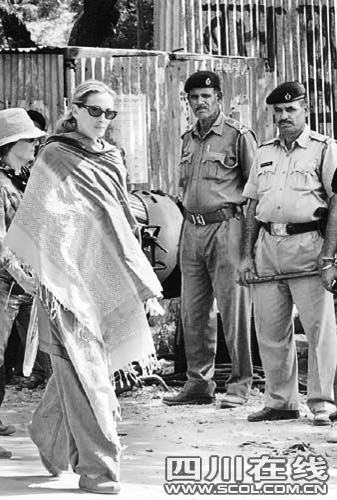 正在印度拍攝新片《Eat, Pray,Love》的好萊塢巨星茱莉亞·羅伯茨,27日穿上印度女士傳統(tǒng)服飾,在當(dāng)?shù)乇辈康男〈迩f開(kāi)工,惹來(lái)大批記者緊貼追訪。有村民為了一睹金像影后的風(fēng)采,爬到樹(shù)上及天臺(tái),當(dāng)中包括小朋友。當(dāng)?shù)鼐揭矅?yán)陣以待,派出五十名手持竹棍的警員到場(chǎng)保護(hù)茱莉亞出入并維持秩序。而為免拍攝內(nèi)容外泄,電影公司在片場(chǎng)掛上黑布。 聞聞