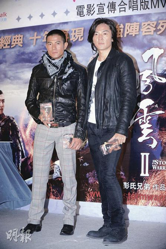 中新網11月23日電 郭富城及鄭伊健 昨日出席電影《風云II》合唱版MV啟播禮,早前有指兩人因爭唱主題曲而鬧不和,城城說:“主題曲原本由我獨唱,歌名《風云義》亦由我想出來,不過電影公司提議合唱以配合宣傳!背浅潜硎疽两∠蠕浺簦犨^后覺得伊健表現非常好,而他入行以來未試過與男生合唱,所以感覺很新鮮。
