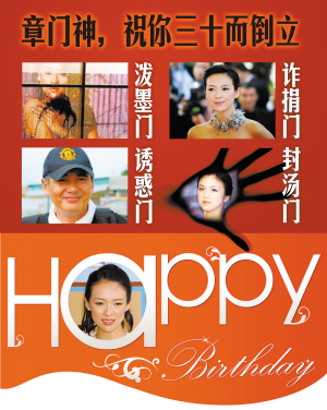 前天是2月9日,章子怡31歲生日,繼“潑墨門”、“詐捐門”、“誘惑門”(周潤發(fā)稱出演《臥虎藏龍》時(shí)曾受到某女星誘惑,網(wǎng)友紛紛將懷疑對(duì)象鎖定章子怡)之后,如今又誕生了一個(gè)新的八卦“門”———“封湯門”:導(dǎo)演陸川微博發(fā)文引網(wǎng)友熱議,章子怡被指疑似封殺湯唯幕后黑手。