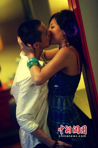 徐靜蕾向來走文藝氣質(zhì)路線,不過日該場(chǎng)激情戲劇照,兩人赤裸上身擁吻,非常投入。