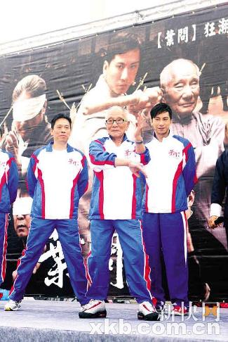 電影《葉問前傳》宣傳,前天在臺(tái)北市府廣場舉行千人打詠春活動(dòng),葉問親生兒子葉準(zhǔn)、男主角杜宇航、女主角陳嘉桓到場出席。早前曾爆出葉準(zhǔn)狠批甄子丹“過河拆橋”,原以為甄子丹登門澄清,事件已告一段落,不料80多歲的葉準(zhǔn)老先生,其實(shí)仍然對(duì)甄子丹頗有微言!