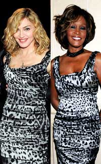 女星撞衫的事件時有所聞,但兩位女星同日撞衫,只能說惠特妮休斯頓的運氣衰到了極點。不過持平來說,惠特妮非常喜歡獵豹,她還曾經擔任“獵豹女郎” (The Cheetah Girls)少女團體的制作人,惠特妮穿豹紋洋裝,比起麥當娜更有說服力。
