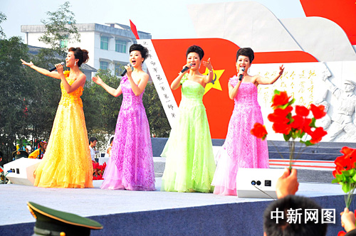 中新網(wǎng)銅鼓9月3日電(段長征 劉占昆)10月3日上午,為慶祝新中國60周年華誕,“為祖國喝彩”—《中國紅歌會》首次走進(jìn)小縣城江西銅鼓,曲措、徐丹、梅林組合、蔡飛等近40名歷屆優(yōu)秀紅歌手激情獻(xiàn)唱。