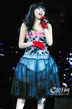 “快女”十強(qiáng)依次上臺(tái)演唱自己的拿手曲目,包括江映蓉的《一個(gè)人跳舞》、李霄云的《沉淀》、黃英的《映山紅》、郁可唯的《如果云知道》、劉惜君的《有一天我會(huì)》以及李媛希的《LOVE》等。郁可唯、李霄云、黃英等的演出都保持水準(zhǔn),而領(lǐng)先推出個(gè)人專輯的曾軼可則用招牌“綿羊音”唱起了專輯里的新歌《電車計(jì)劃》和《新的家》。曾軼可顯然自得其樂,頗為放松,在舞臺(tái)上彈唱之余,還有一些舞蹈動(dòng)作。但除了臺(tái)下一個(gè)小小方陣的歌迷舉著“專輯大賣”的牌子大聲吶喊外,觀眾應(yīng)聲寥寥。前來“圓場”的主持人郭彪和吉杰則對(duì)曾軼可說:“你放心,你的專輯最少有兩張的銷量,因?yàn)槲覀儌z都預(yù)定了!币字ツ