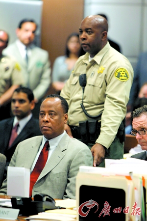康拉德·默里在法庭上接受了簡(jiǎn)短的訊問(wèn)。身穿灰色西裝的康拉德·默里在法庭訊問(wèn)過(guò)程中只是簡(jiǎn)單地回答法官提出的問(wèn)題。訊問(wèn)結(jié)束后他被法警扣押,但在辦理了取保候?qū)彽氖掷m(xù)后離去,他支付了7.5萬(wàn)美元的保釋金。